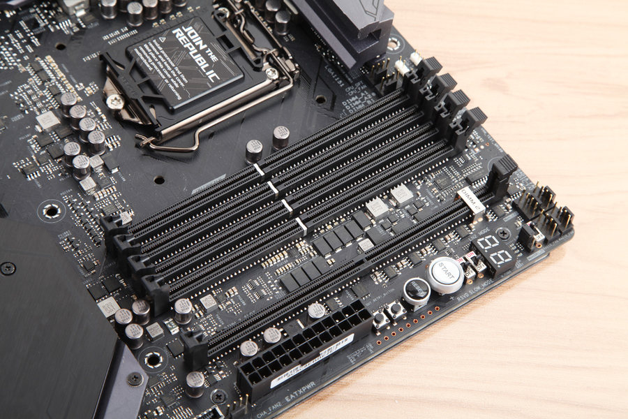 华硕ROG MAXIMUS XI EXTREME拥有四个DIMM插槽和一个DIMM.2插槽,DIMM插槽默认支持双通道4400MHz的内存规格,DIMM.2扩展槽支持两个M.2 SSD。