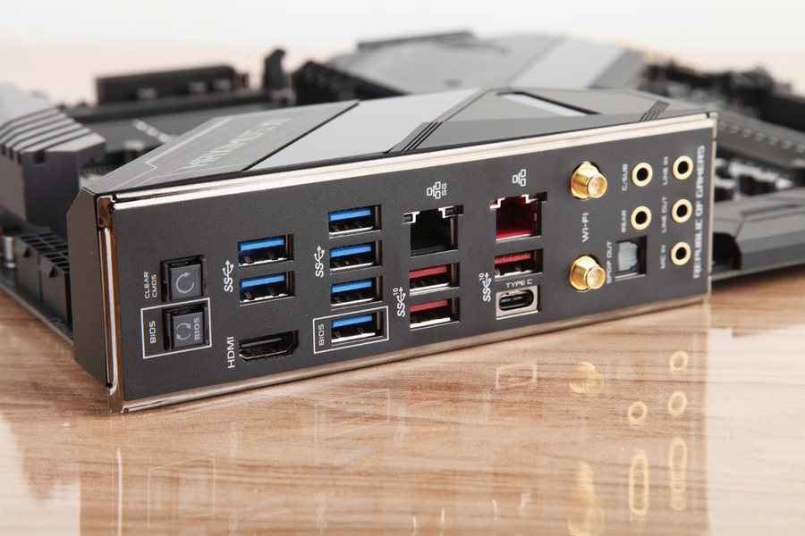 在I/O面板方面,华硕ROG MAXIMUS XI EXTREME配备了三个Z390主板原生支持的USB 3.1 Gen2 Type-A接口一个Type-C接口,两个LAN接口,一个是Aquantia AQC-111C 5G接口,支持是千兆的5倍速率,另一个为Intel I219-V提供的千兆、6个USB 3.0接口和一个HDMI视频输入接口和两组音频接口。满足玩家多样化扩展需求。