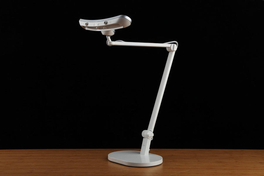 明基WiT MindDuo Plus护眼灯采用了十分简洁的外观设计,台灯的灯臂有两个可调节的转轴组成。灯头部分设计独特,如果您没有了解过明基WiT MindDuo系列护眼灯,一定会觉得这种外形十分奇怪,但这正是这款台灯设计的精髓所在。它采用了“飞碟”似的设计,像极了动画片里的“小飞船”。