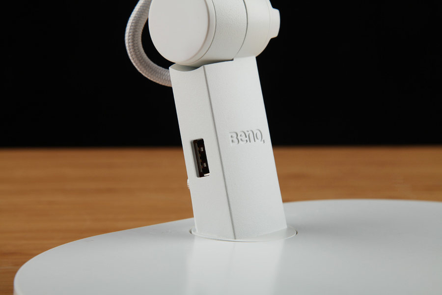 在灯臂下部,明基还为我们配备了一个USB充电接口,可以提供5V 1A的电能,让手机平板等设备能够便捷的充电,满足我们日常的使用需求。