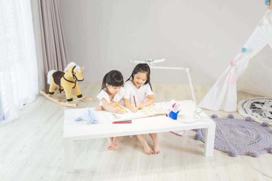 根据研究显示,在读书时,冷白高亮度将使人更加专心,所以书本阅读模式为孩子提供的是6000K色温的高亮度光线;而在进行数字阅读模式时,台灯则会提供4000K的中间色温与较低的亮度,以平衡在电子屏幕阅读下可能产生的眩光效果。