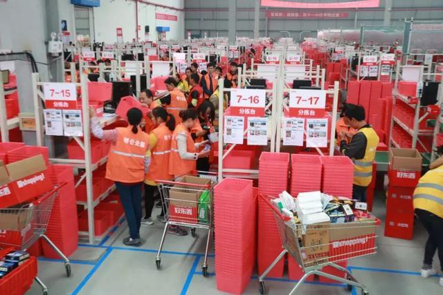 小红书5万平米的仓库里,工人们在忙碌地分拣包裹