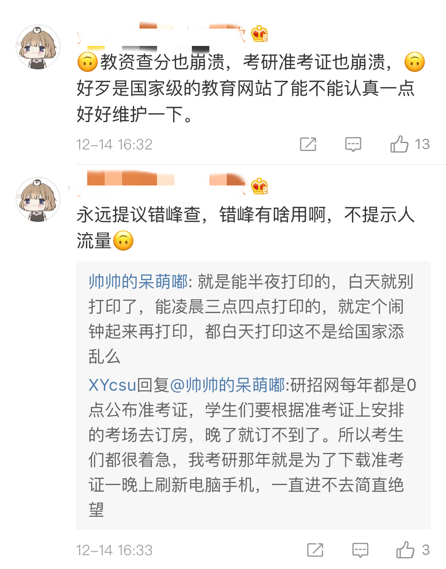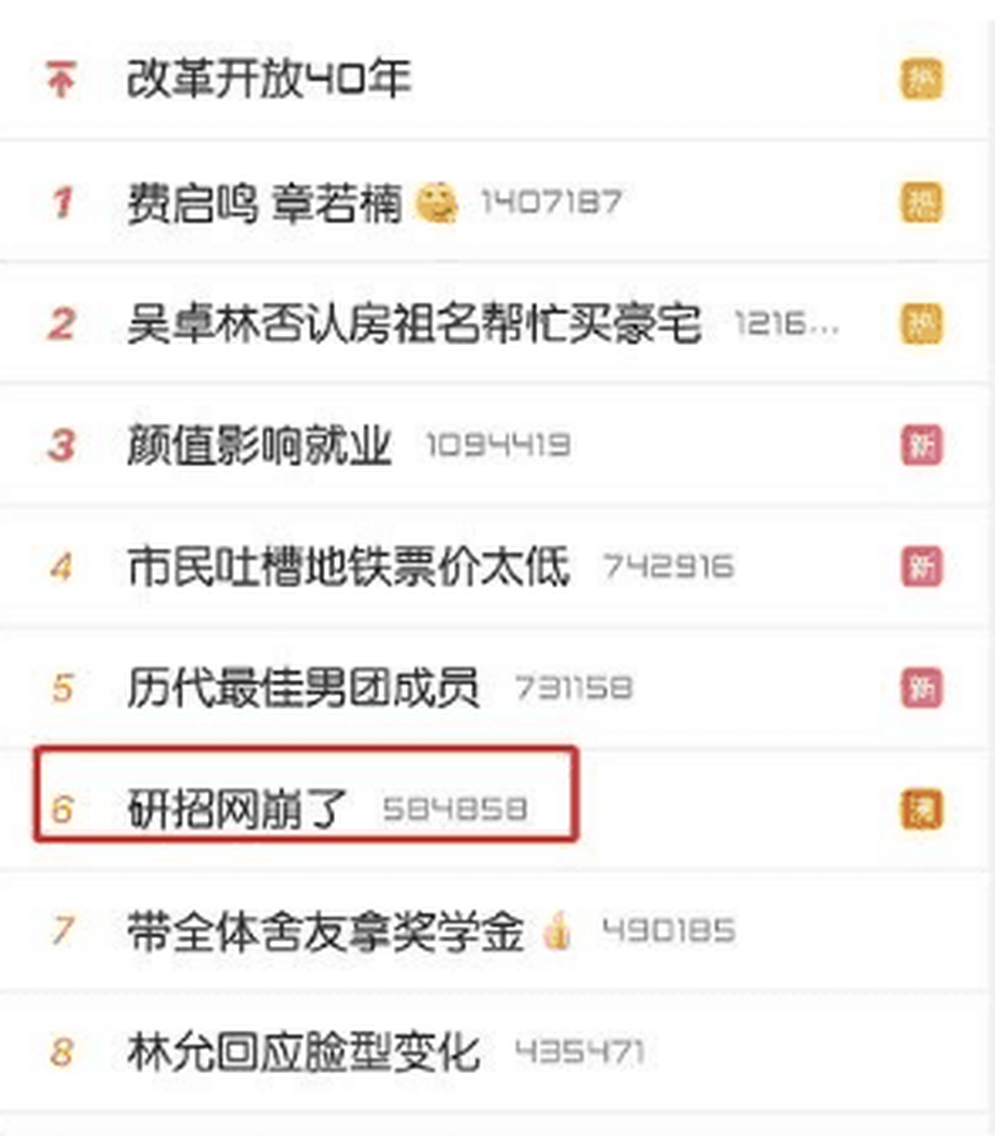 此事还上了微博热搜,有网友调侃研招网“你已经是一个成熟的网站了,咋还崩?崩了不会自己修复啊”。“交钱的时候很流畅”。“好歹是国家级的教育网站了能不能认真一点好好维护一下”。