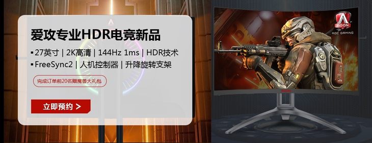 时至岁末年初,寒夜来袭,全球领先显示器品牌的爆品AGON爱攻 AG273QCX显示器开始了预售,如果说键鼠是玩家的双手那么显示器就是玩家的眼睛,双手可以做出精彩的操作而眼睛可以做出最快的反应,AGON爱攻具有品质坚固,性能优异的特点,深受职业选手和玩家的青睐。原价3499元的电竞显示器,现在只需支付1元定金就可以享受300元优惠,真正到手价只需3199元,前20名预定的朋友还可以拿到魔兽大礼包。机会难得还不赶快行动起来。