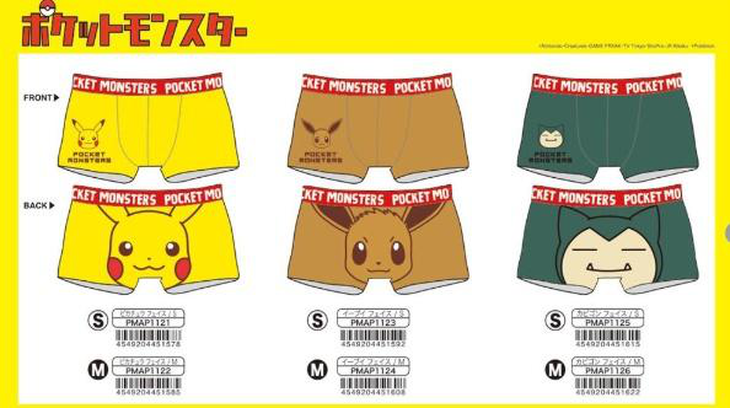 本次推出的精灵宝可梦四角内裤共分为3种款式,除了万年主角皮卡丘外,还有NS游戏中的人气角色伊布和吃货卡比兽。